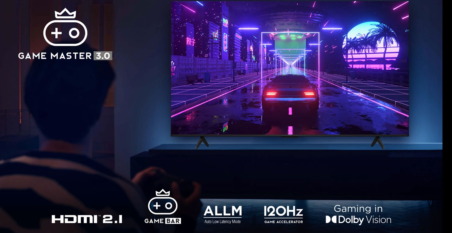 * 144Hz Motion Clarity PRO διατίθεται μόνο σε μοντέλο 98". Game Master PRO 3.0 διαθέσιμο μόνο σε 98" και Game Master 3.0 διαθέσιμο σε μοντέλα 43", 50", 55", 65", 75" και 85".
