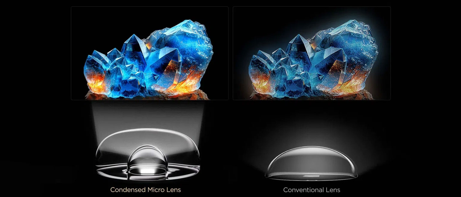 Η τεχνολογία συμπυκνωμένου μικροφακού της TCL που αναπτύχθηκε μόνος του ελέγχει με ακρίβεια την κατεύθυνση του φωτός μέσω του σχεδιασμού μείωσης της φωτεινότητας της αψιδωτής γέφυρας. Μέσω του ελίτ μοντέλου υπολογισμού τύπου φωτός, σχηματίζεται μια χρυσή καμπυλότητα με ικανότητα εστίασης σούπερ φωτός, η οποία βελτιώνει σημαντικά την ομοιομορφία του οπίσθιου φωτισμού και τον έλεγχο του φωτοστέφανου για πιο καθαρές λεπτομέρειες οθόνης.