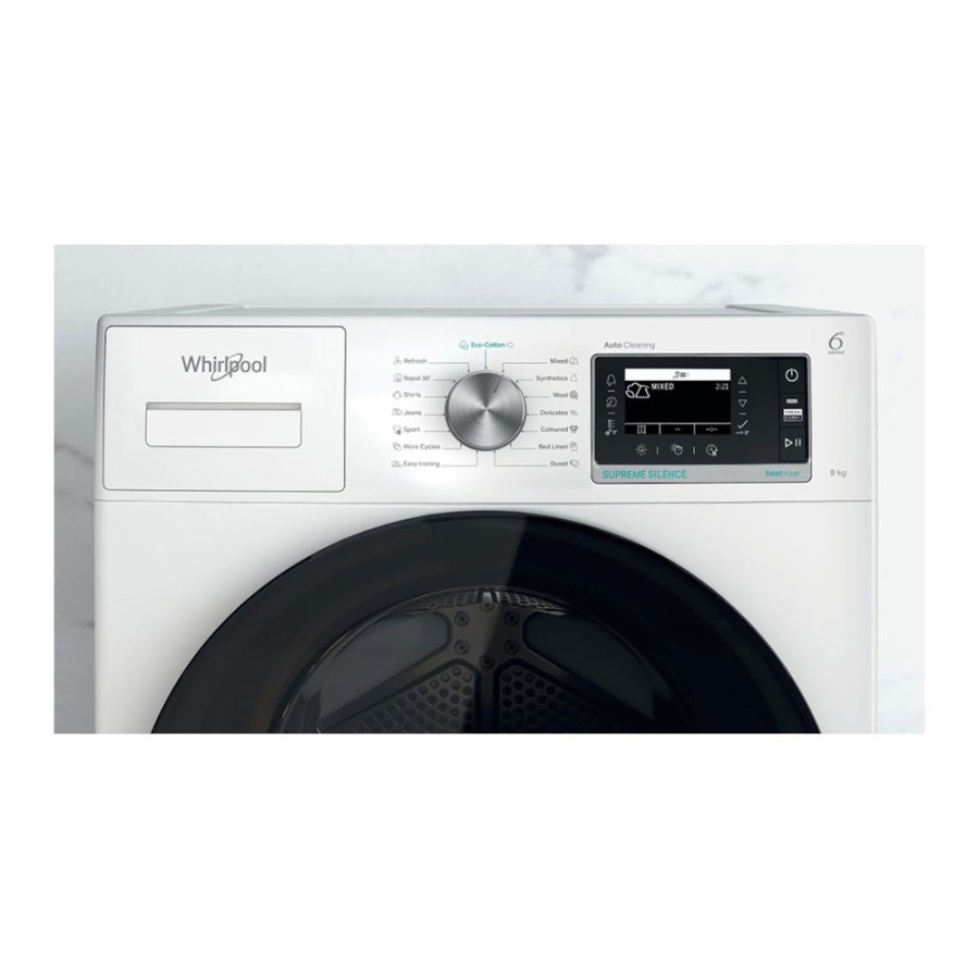 Whirlpool W7 D94WB EE Στεγνωτήριο Ρούχων 9kg με τεχνολογία αντλίας θερμότητας για να μένεις ήσυχος πως τα υφάσματά σου θα βγουν από τον κάδο πιο στεγνά από ποτέ.