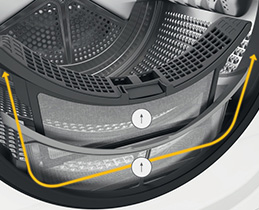 H τεχνολογία 3DRY παρέχει ομοιόμορφη κατανομή θερμότητας μέσα στο τύμπανο χάρη στις πολλαπλές ροές θερμού αέρα. Για ομοιόμορφο αποτέλεσμα στεγνώματος ακόμα και σε ογκώδη υφάσματα, που δεν θα ξαναβγούν ποτέ βρεγμένα ή νωπά από το στεγνωτήριό σου!
