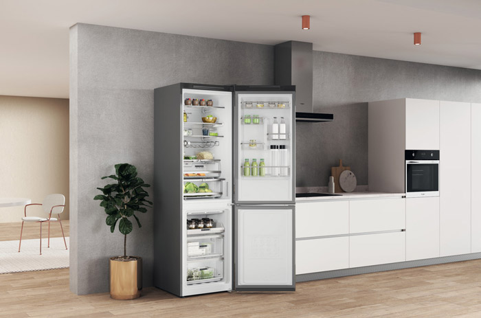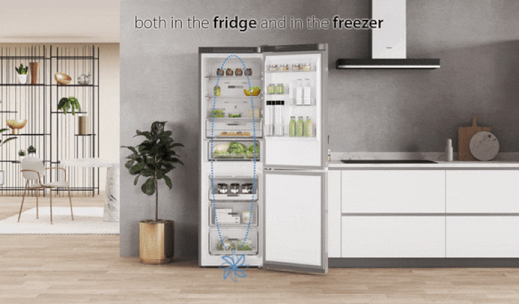Ταχεία ψύξη. Η θερμοκρασία στο εσωτερικό του ψυγείου μειώνεται αμέσως μόλις τοποθετηθούν νωπά τρόφιμα. Ενσωματωμένοι αισθητήρες ρυθμίζουν αυτόματα τη θερμοκρασία ψύξης, εξασφαλίζοντας χαμηλή κατανάλωση ενέργειας και φρεσκάδα που διαρκεί.Ηλεκτρονικό Σύστημα Ελέγχου