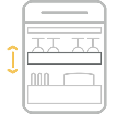 Ρυθμιζόμενο πάνω καλάθι. Το ρυθμιζόμενο πάνω καλάθι του πλυντηρίου πιάτων σου επιτρέπει να δημιουργείς επιπλέον χώρο όταν χρειάζεται, καθώς και να τοποθετείς σκεύη με ασυνήθιστο σχήμα, χωρίς κόπο.