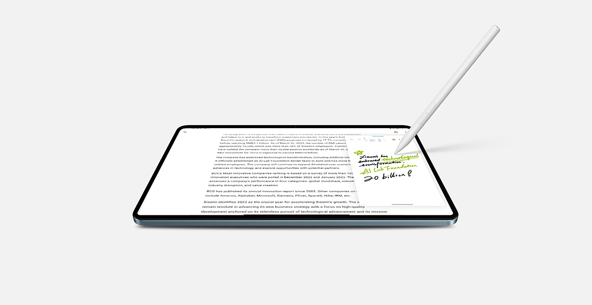 Η κωνική σχεδίαση 26° είναι πιο κοντά στην άκρη, επομένως δεν εμποδίζει την όρασή σου. Εύκαμπτο υλικό, 3 φορές πιο ανθεκτικό στη φθορά*. Η πίεσή του προς τα κάτω προσομοιώνει την εμπειρία γραφής σε πραγματικό χαρτί, επιτρέποντάς σου να γράφεις ομαλά και ευκρινώς. *Σε σύγκριση με το Xiaomi Smart Pen, τα δεδομένα προέρχονται από το Xiaomi Laboratory.Ιδανικός συνεργάτης για τα Xiaomi Pads. Κάνε εύκολη τη δημιουργία