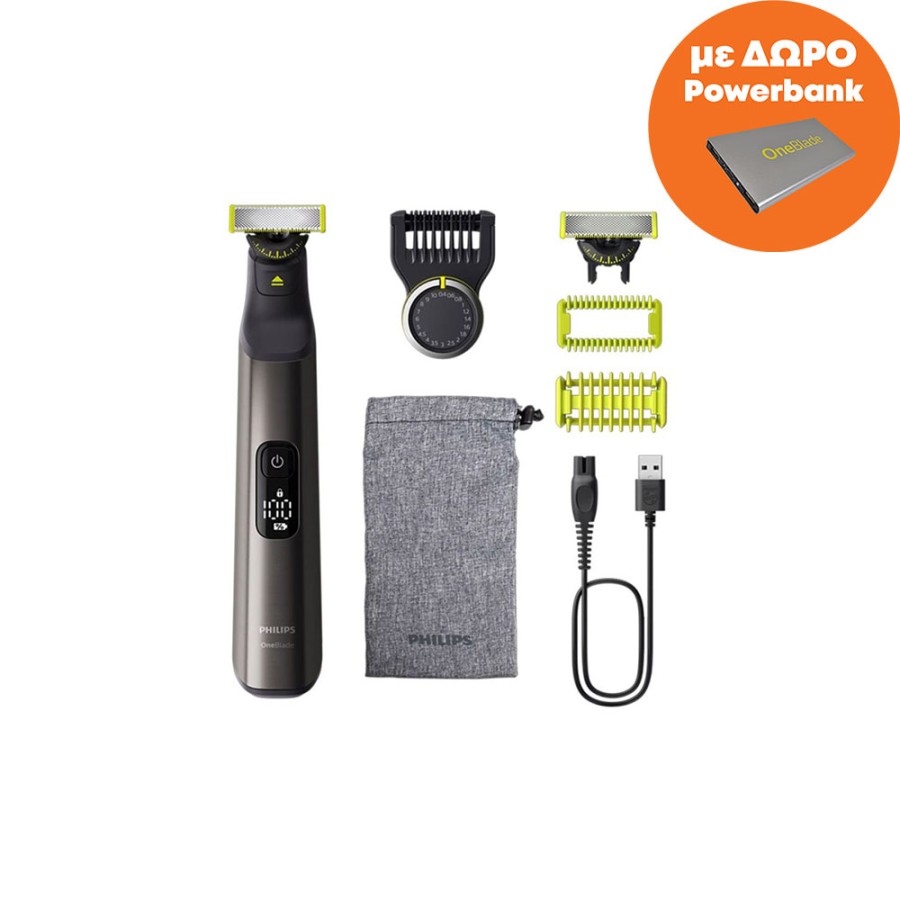 Το Philips OneBlade Pro για Πρόσωπο και Σώμα τριμάρει, διαμορφώνει και ξυρίζει κάθε μήκους τρίχα. Περιλαμβάνει μια λεπίδα για το πρόσωπο και μία επιπλέον με ειδικό προστατευτικό κάλυμμα για το σώμα. Ξέχασε τα πολλαπλά εργαλεία: το OneBlade τα κάνει όλα.
